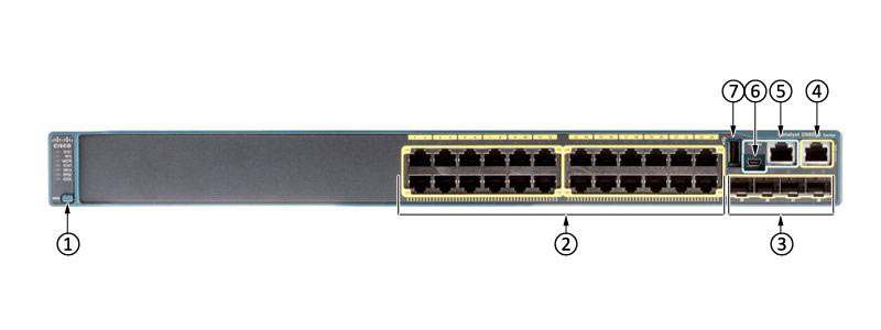Hình ảnh: Các cổng kết nối mặt trước của Switch chia mạng WS-C2960S-24PS-L