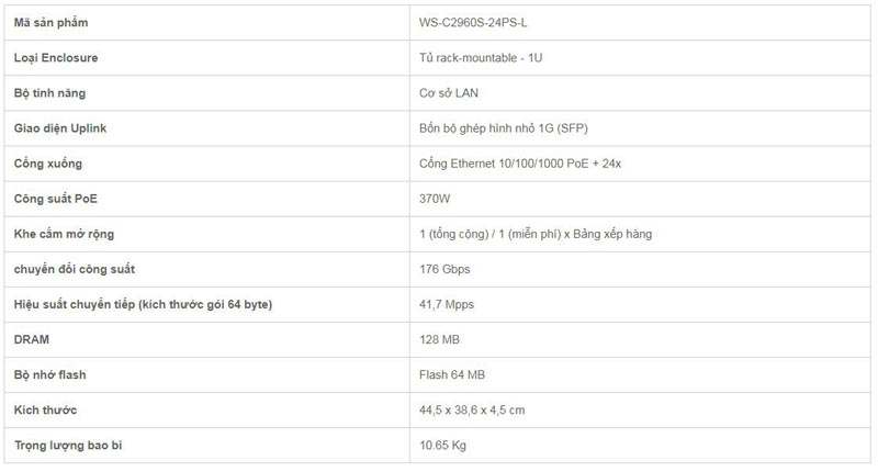 - Mã sản phẩm: WS-C2960S-24PS-L